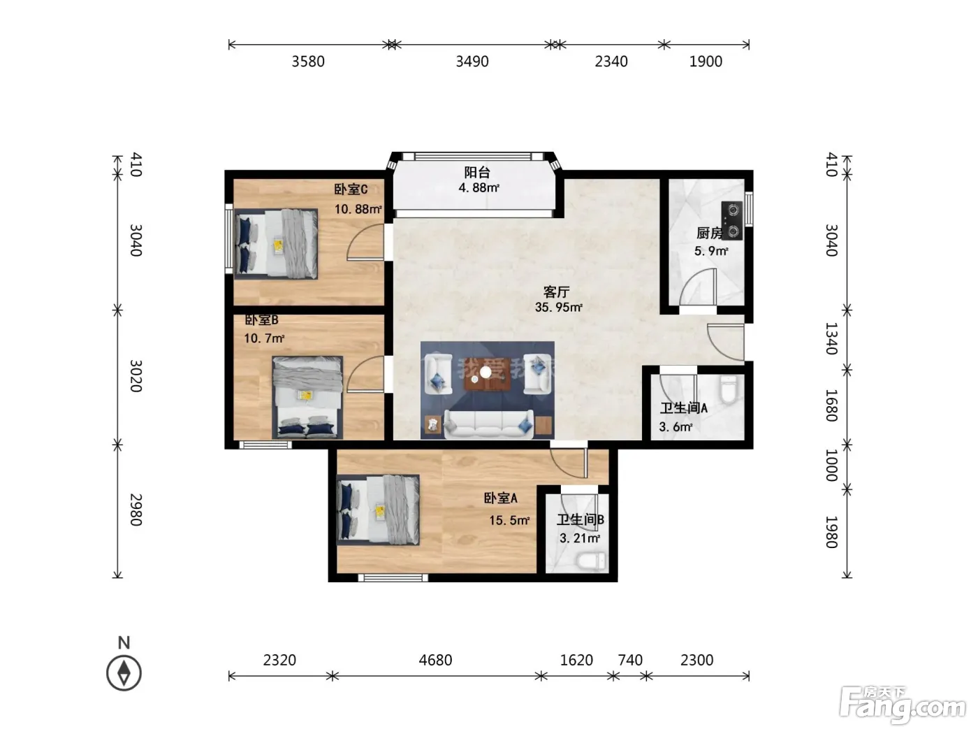 3室1厅2卫
