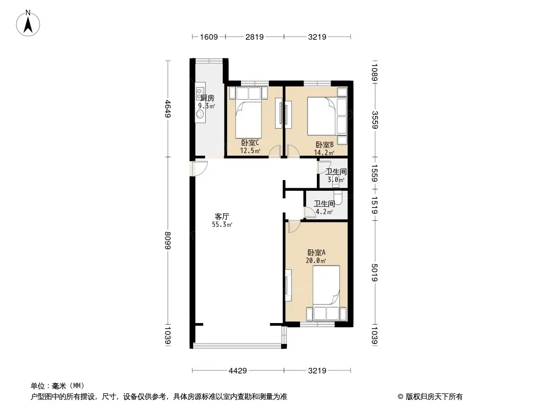 星瑞家园 3室2厅 南 北