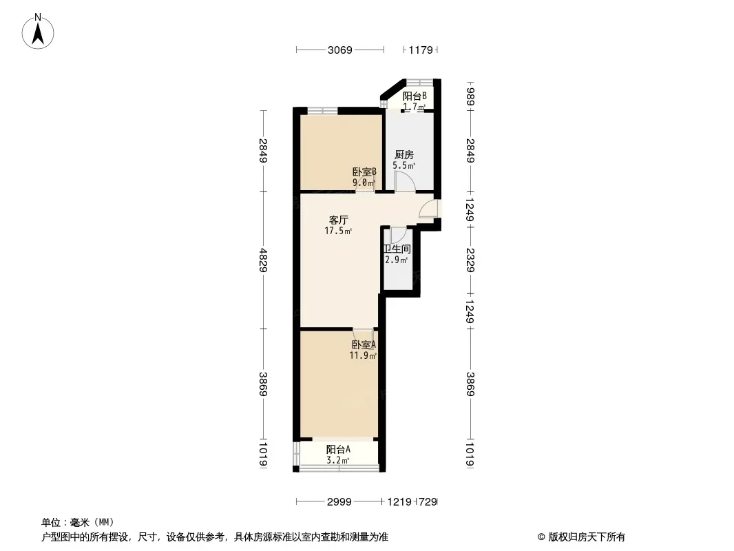 户型齐全,主打户型方正,明厨,客厅朝南,双阳台二居