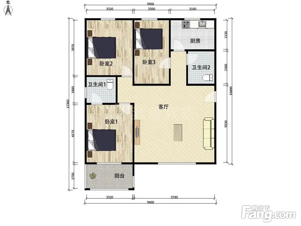 3室1厅2卫