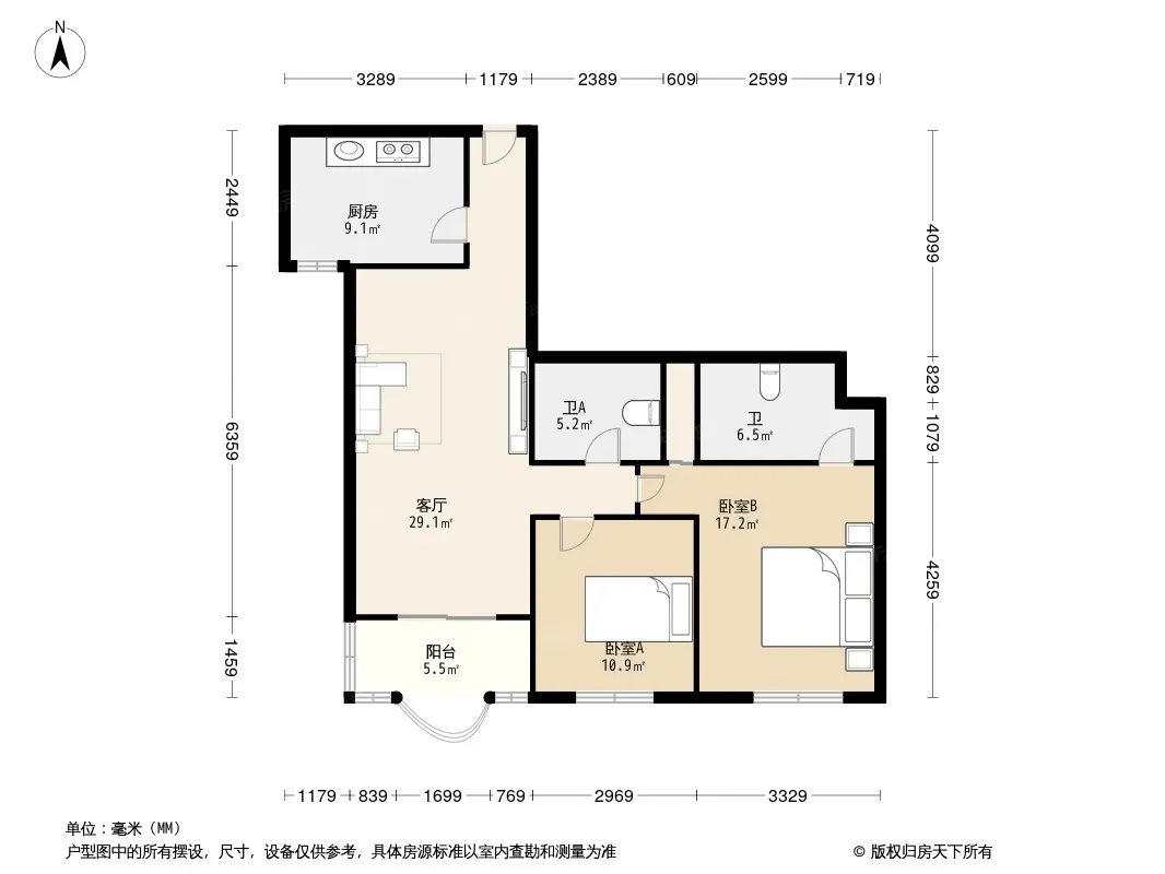 户型齐全,主打户型方正,明厨,主卧朝南二居