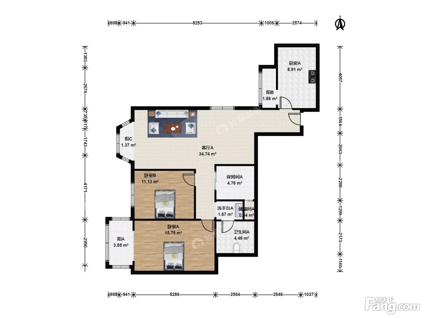 户型齐全,主打客厅朝南二居
