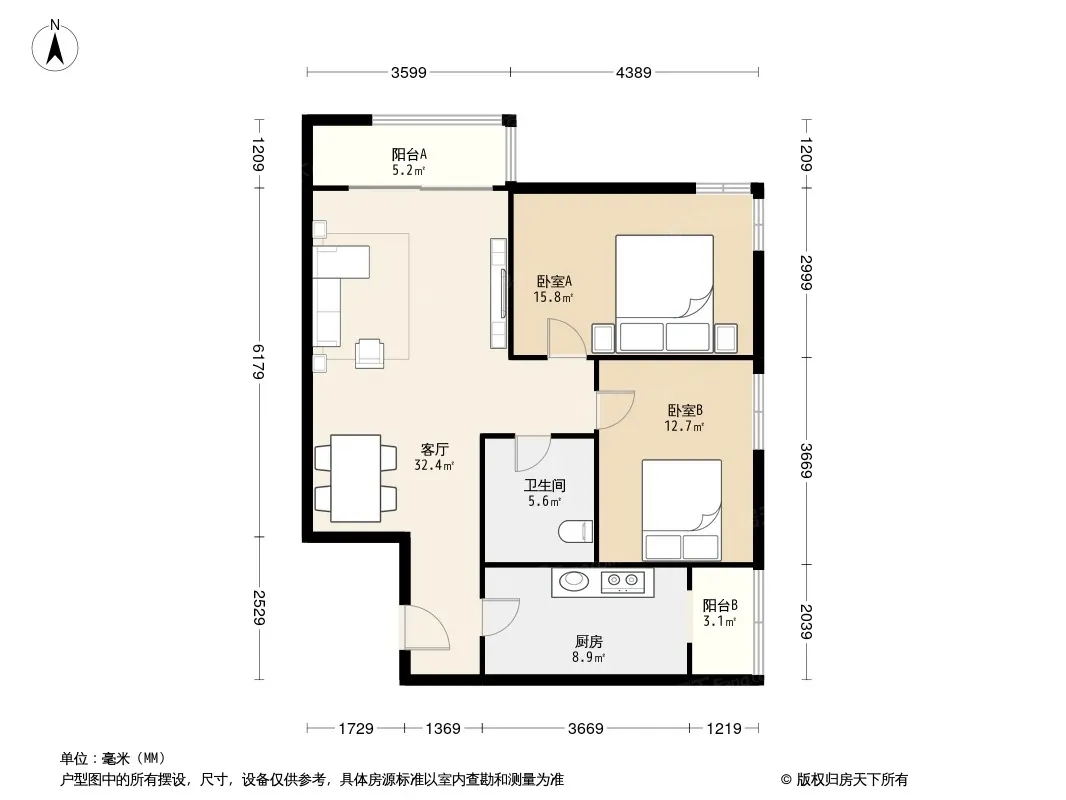 户型齐全,主打户型方正,客厅朝南,双阳台二居