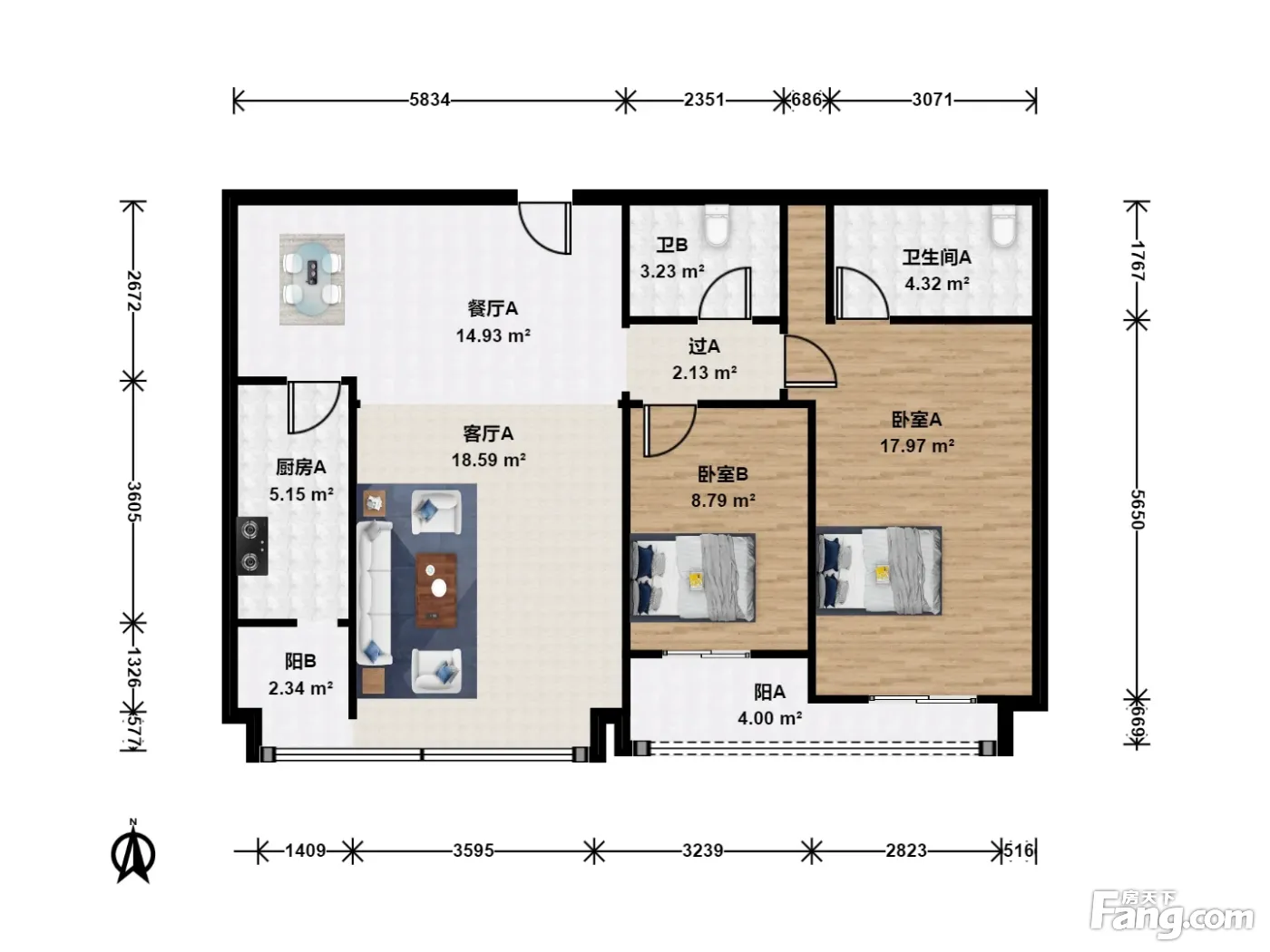 2室1厅2卫