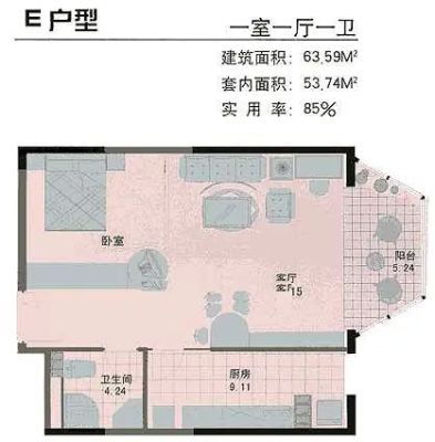 户型齐全,主打双阳台一居