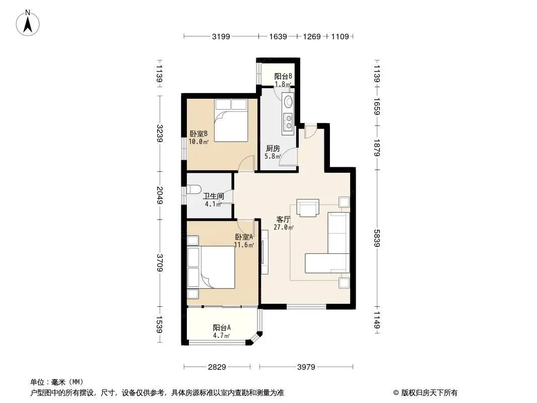 户型齐全,主打明卫,客厅朝南,双阳台三居
