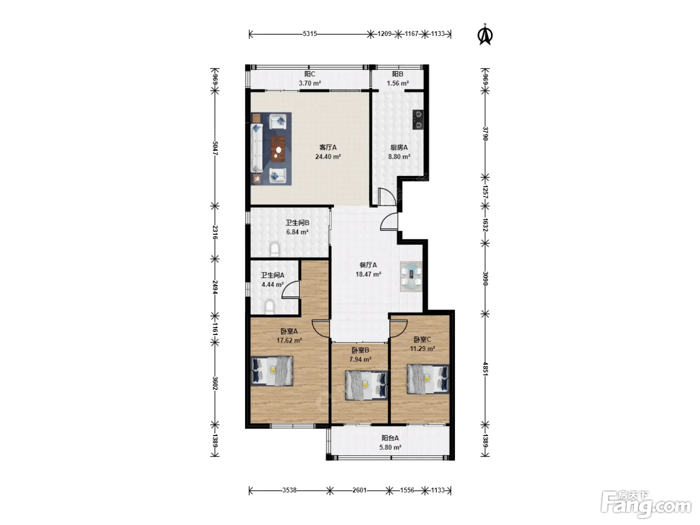 户型齐全,主打明厨,主卧朝南,双阳台三居