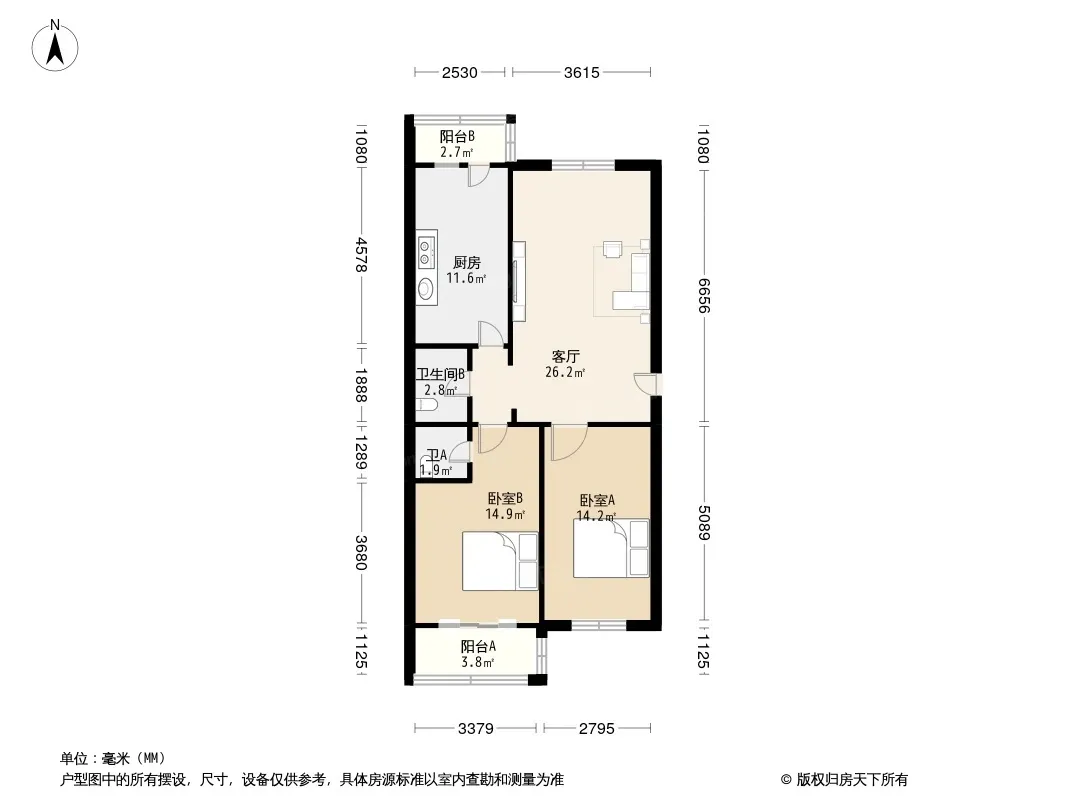 户型齐全,主打户型方正,明卫,明厨,客厅朝南,全明格局三居