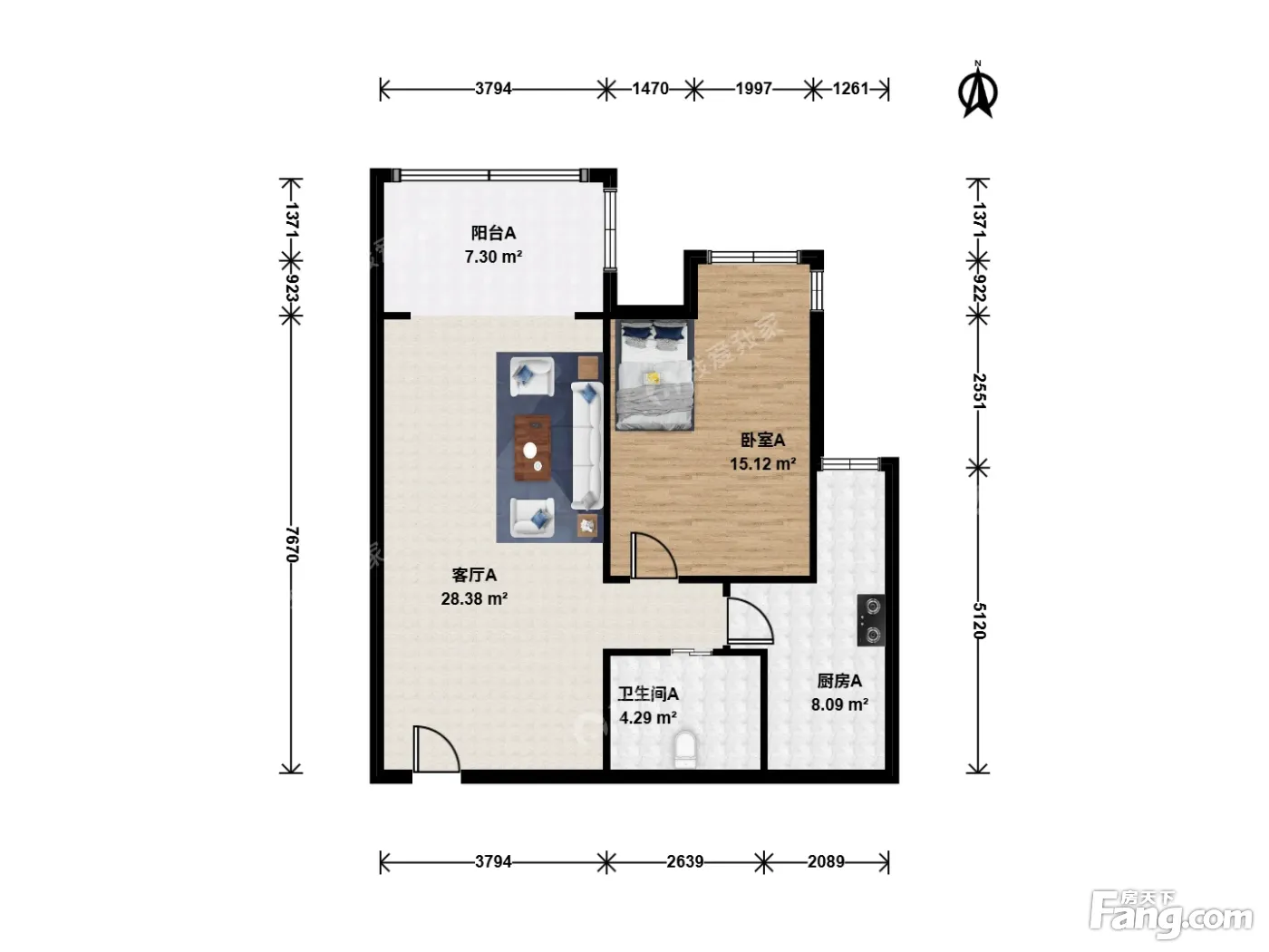 阳光丽景 1室1厅 北