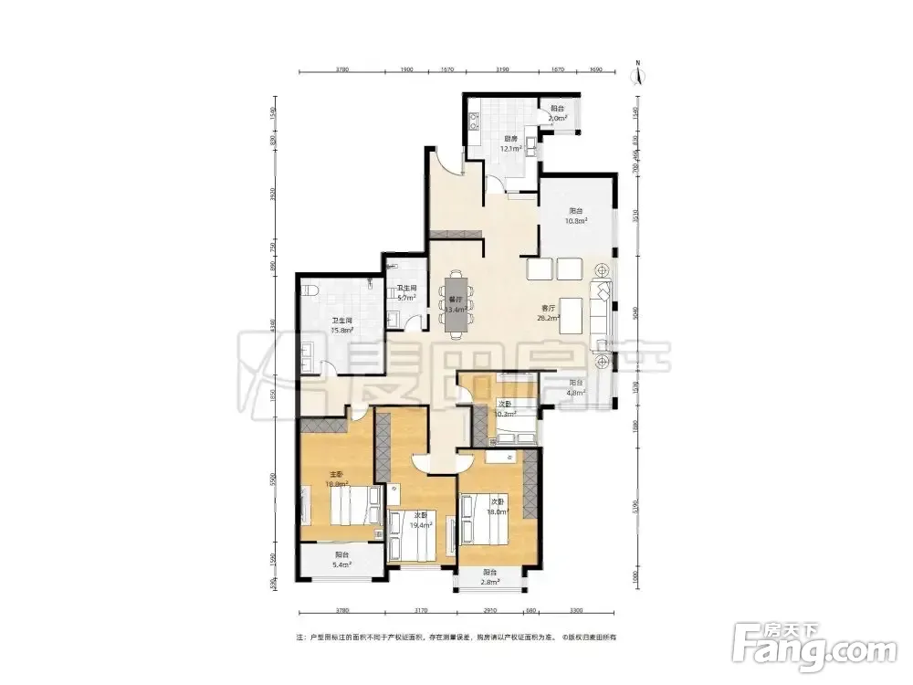 户型齐全,主打独立衣帽间,客厅朝南三居