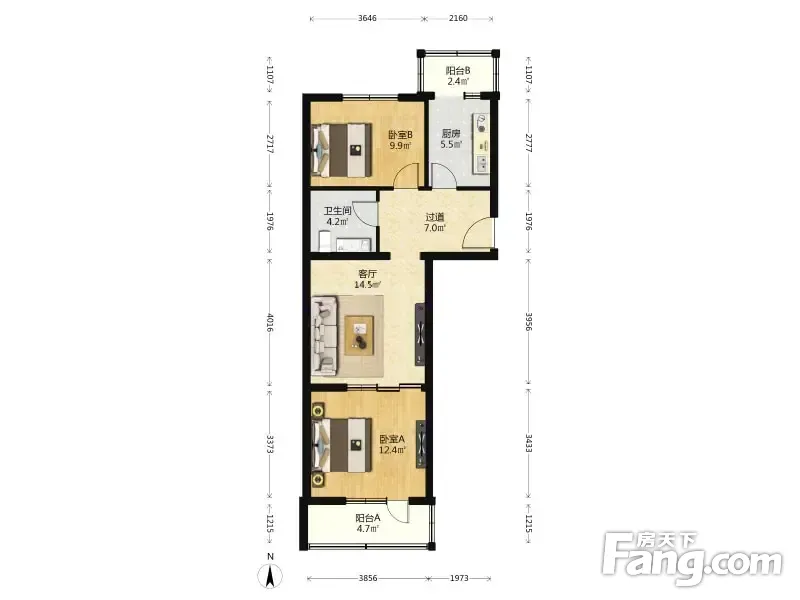 康盛园南北通透两居室户型好业主诚心卖