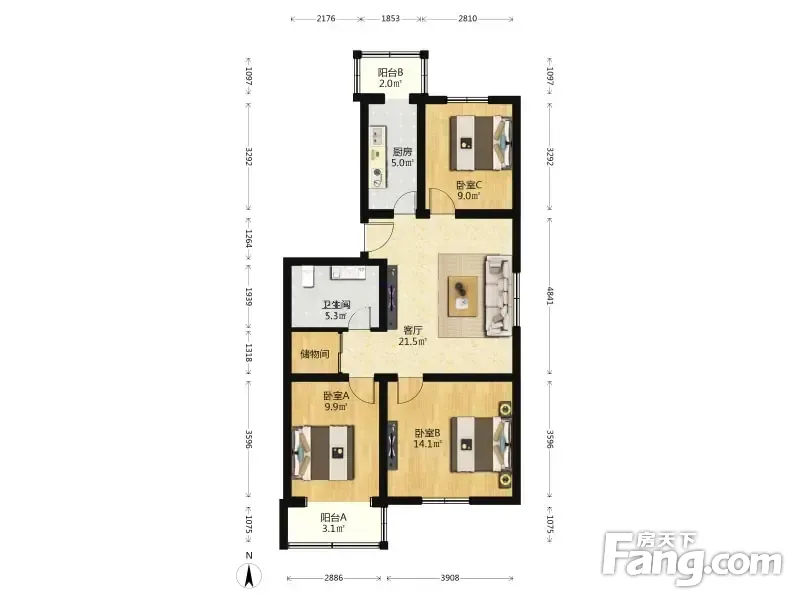 康盛园南北通透三居室,客厅有明窗