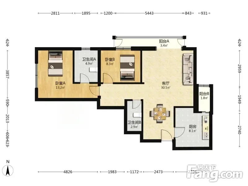 2室1厅2卫