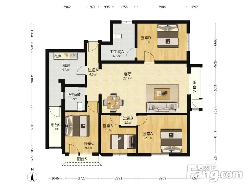 伯宁花园 朝阳公园 四居室 东南 采光好