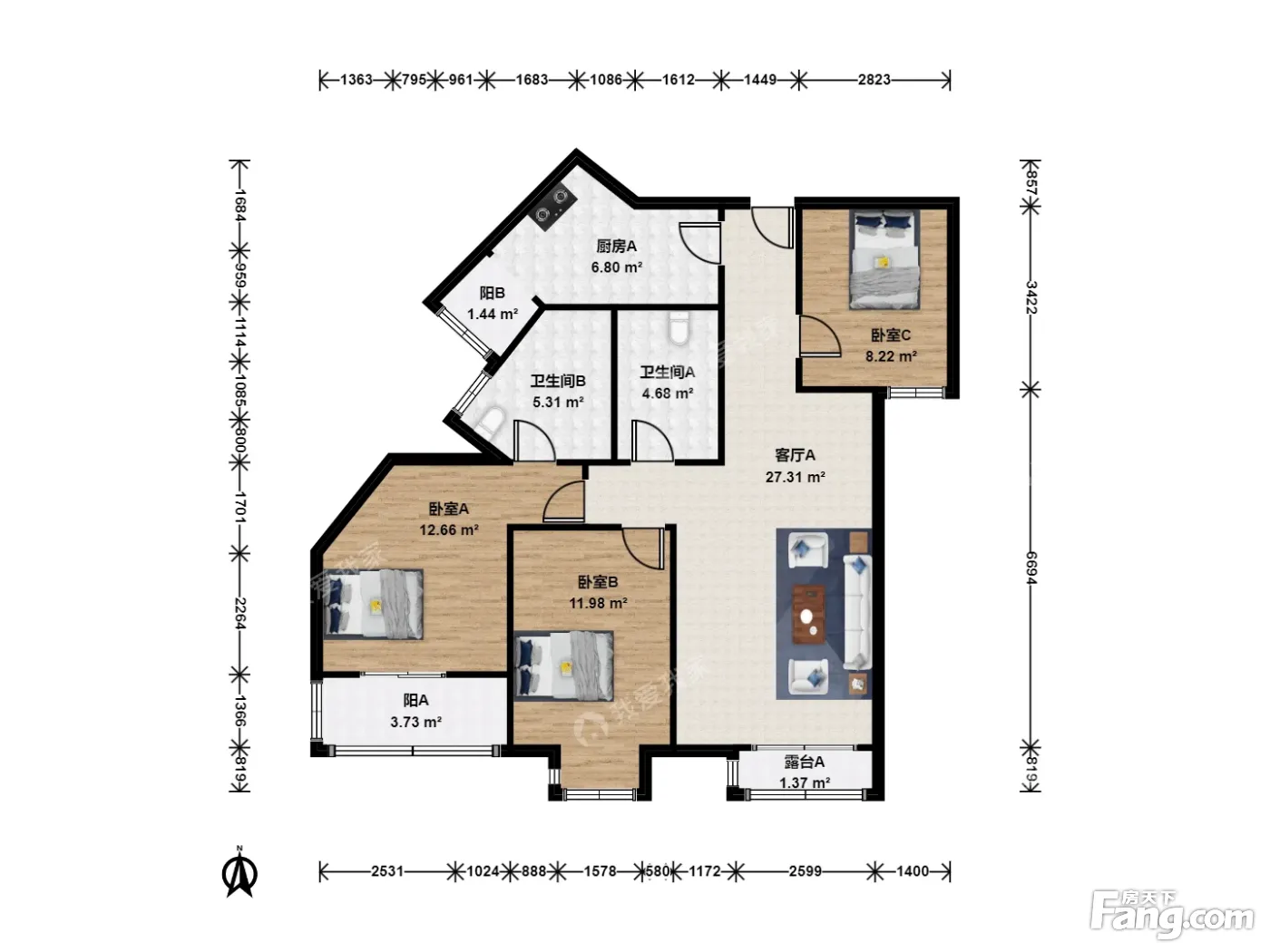 3室1厅2卫