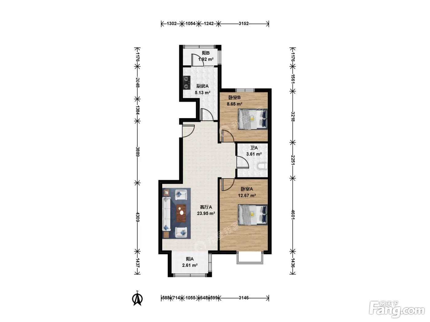 户型齐全,主打客厅朝南二居