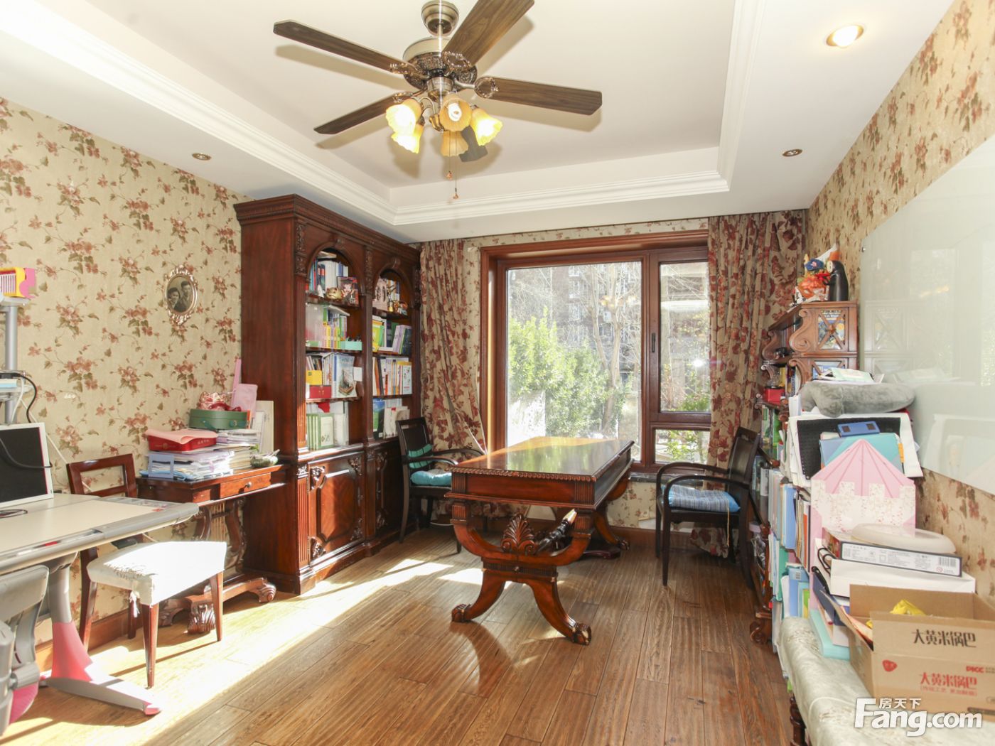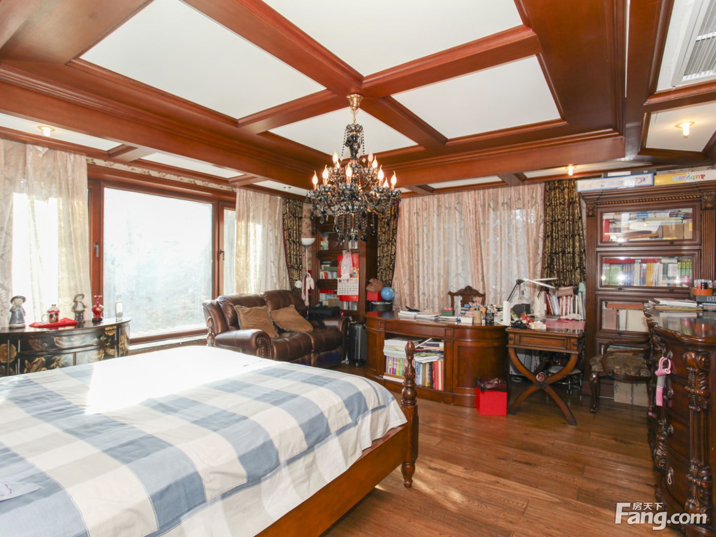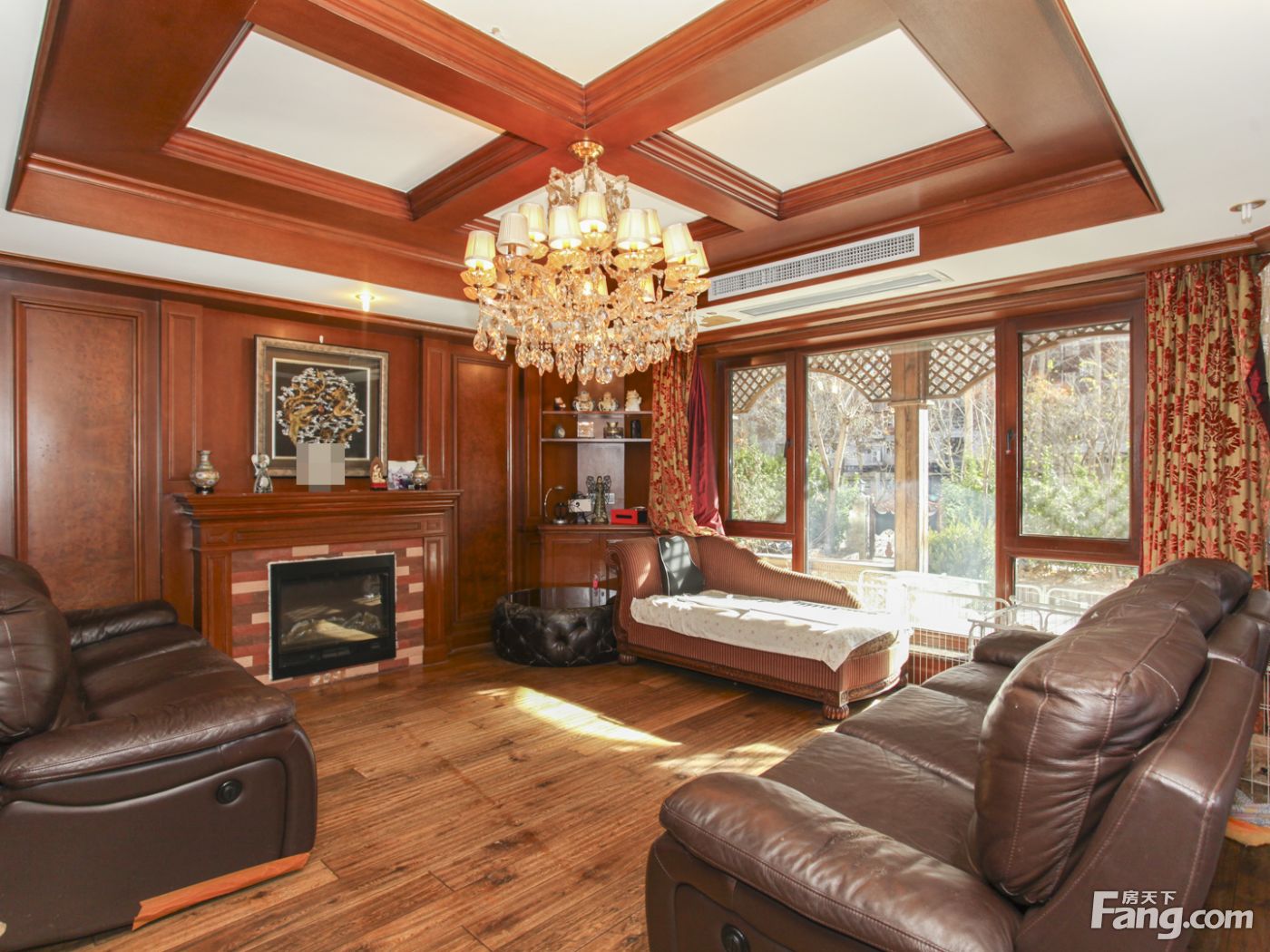 房子前后西侧三面花园,南花园大概120平米,北向加西向花园60平米。中间位置不临街一层复式三面采光户型方正结构合理。虽然面积很大但是浪费面积很少.本房是南北通透四室二厅四卫户型,面积299.43平米,客厅和主卧室朝南,小区中间位置,采光好园区一楼带南北西三花园。