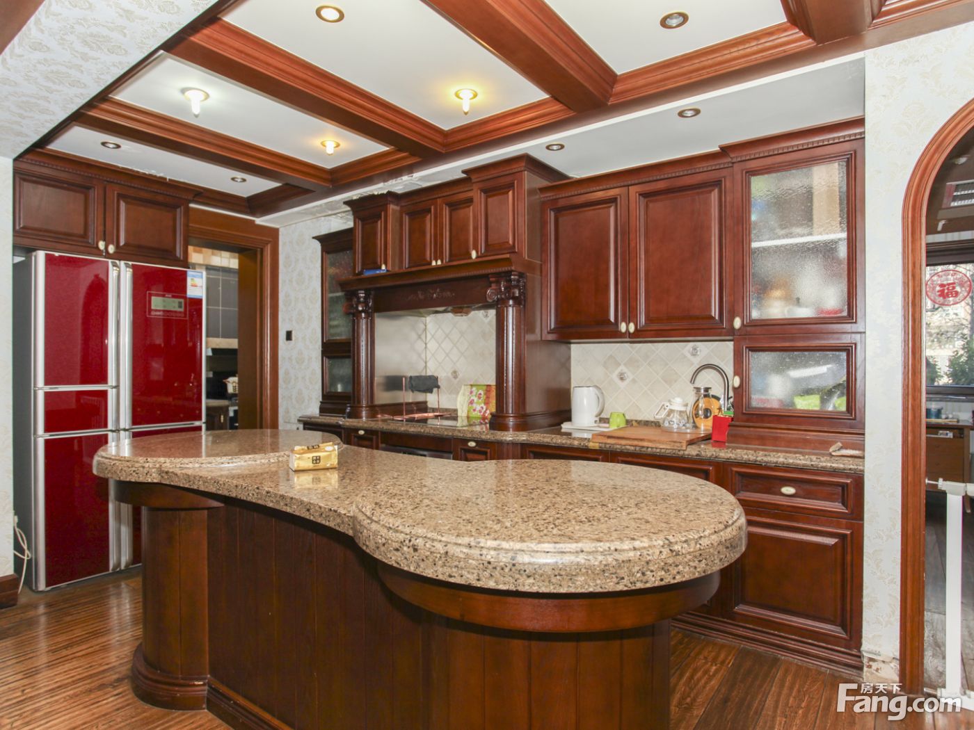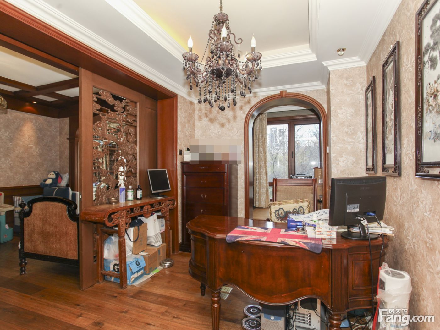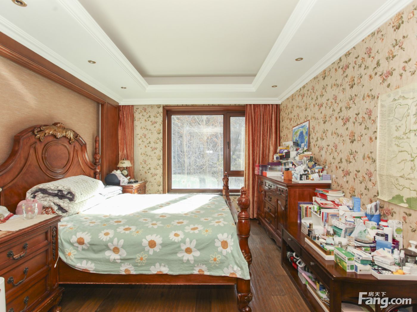 房子前后西侧三面花园,南花园大概120平米,北向加西向花园60平米。中间位置不临街一层复式三面采光户型方正结构合理。虽然面积很大但是浪费面积很少.本房是南北通透四室二厅四卫户型,面积299.43平米,客厅和主卧室朝南,小区中间位置,采光好园区一楼带南北西三花园。