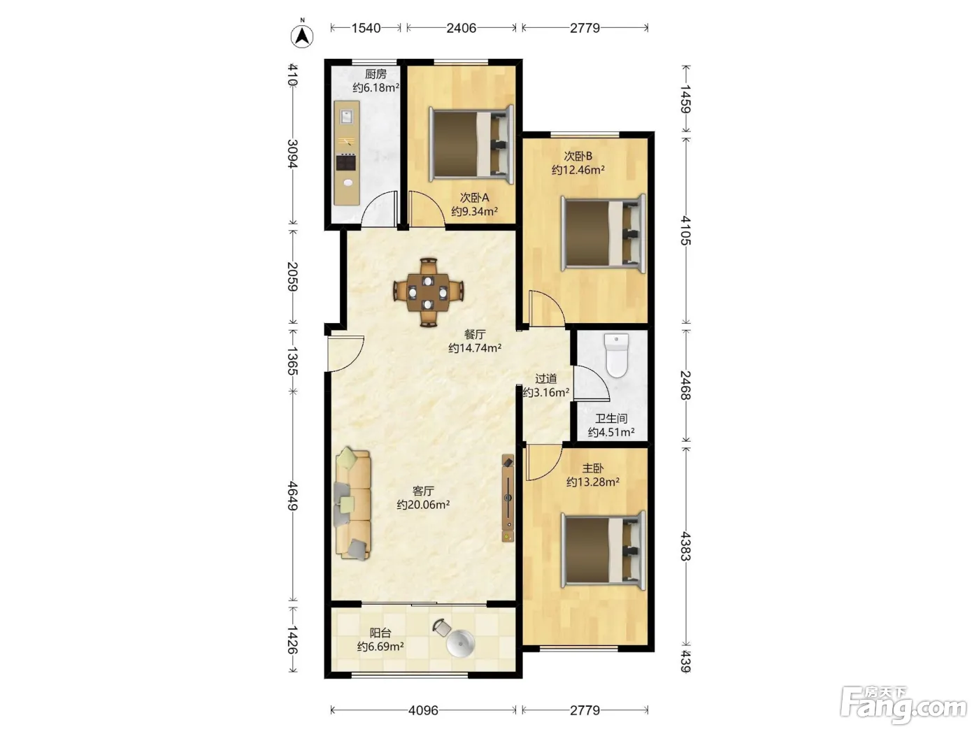 户型齐全,主打户型方正,明厨,主卧朝南三居