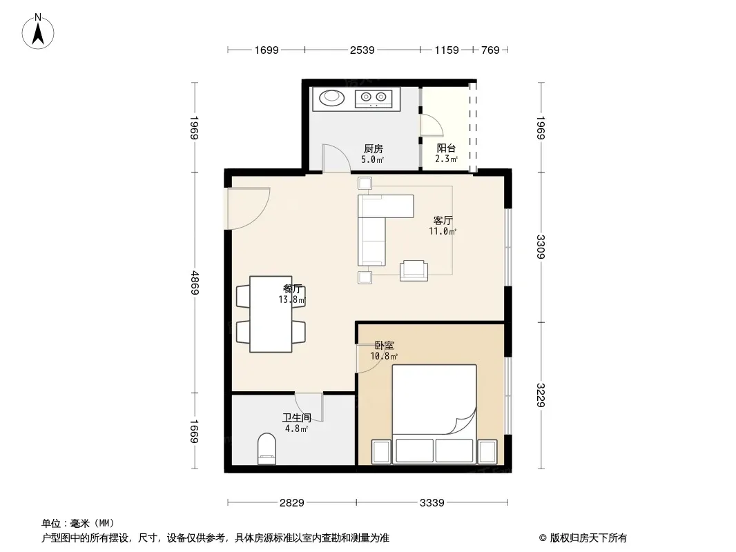 户型齐全,主打客厅朝南二居