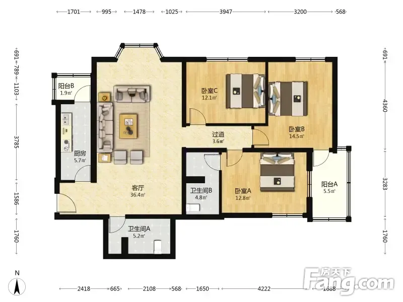 花样年华,三居两卫,精装东南朝向