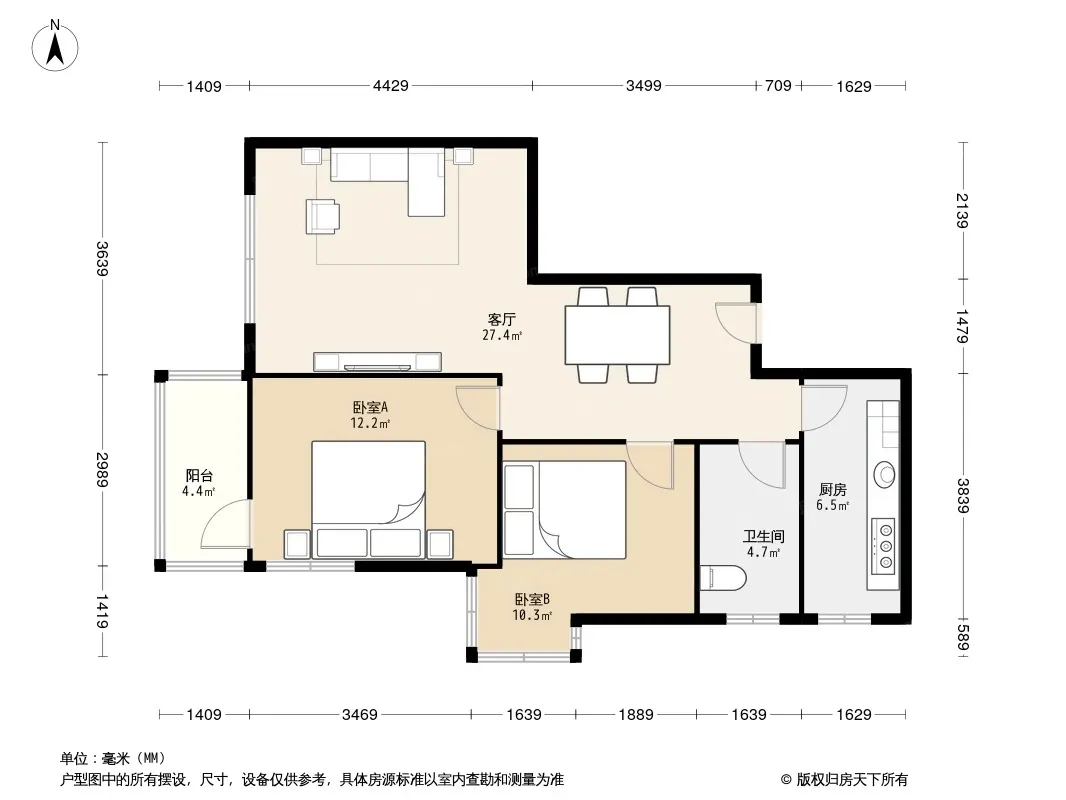 户型齐全,主打客厅朝南二居