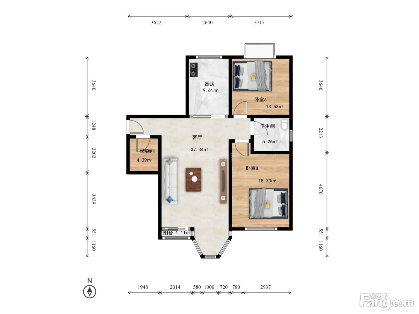 合生汇旁珠江帝景B区南北通透两居室,二次精装修