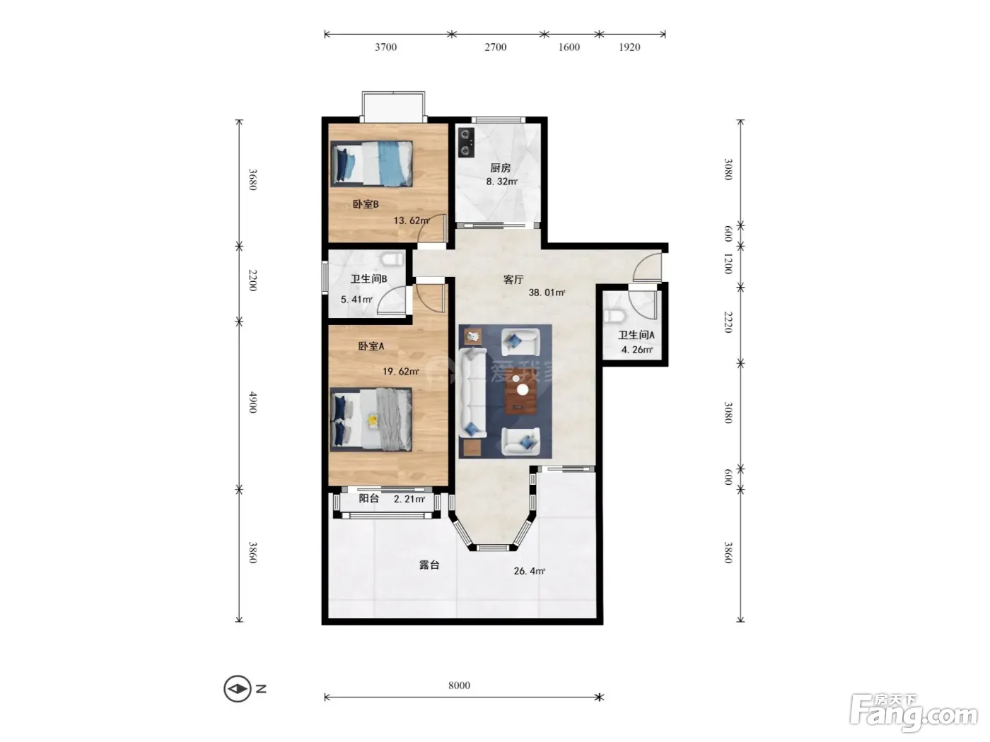 2室1厅2卫