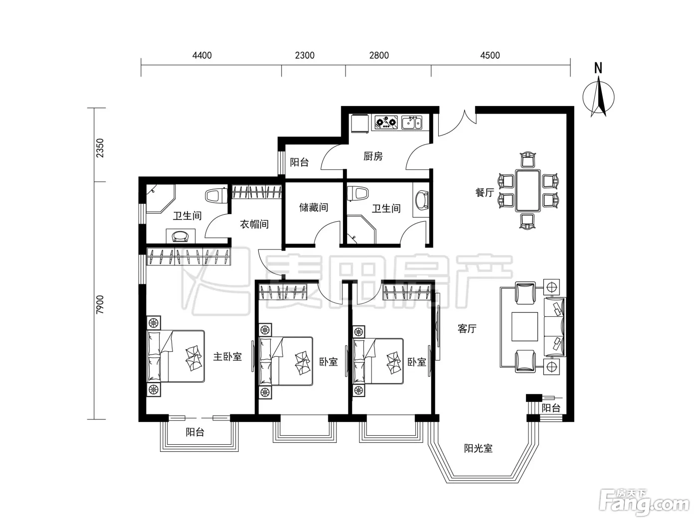 户型齐全,主打户型方正,明厨,双阳台三居