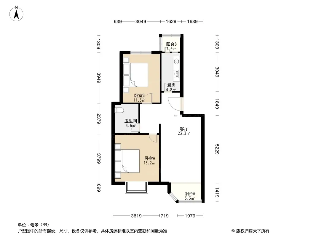户型齐全,主打客厅朝南,主卧朝南,户型方正二居