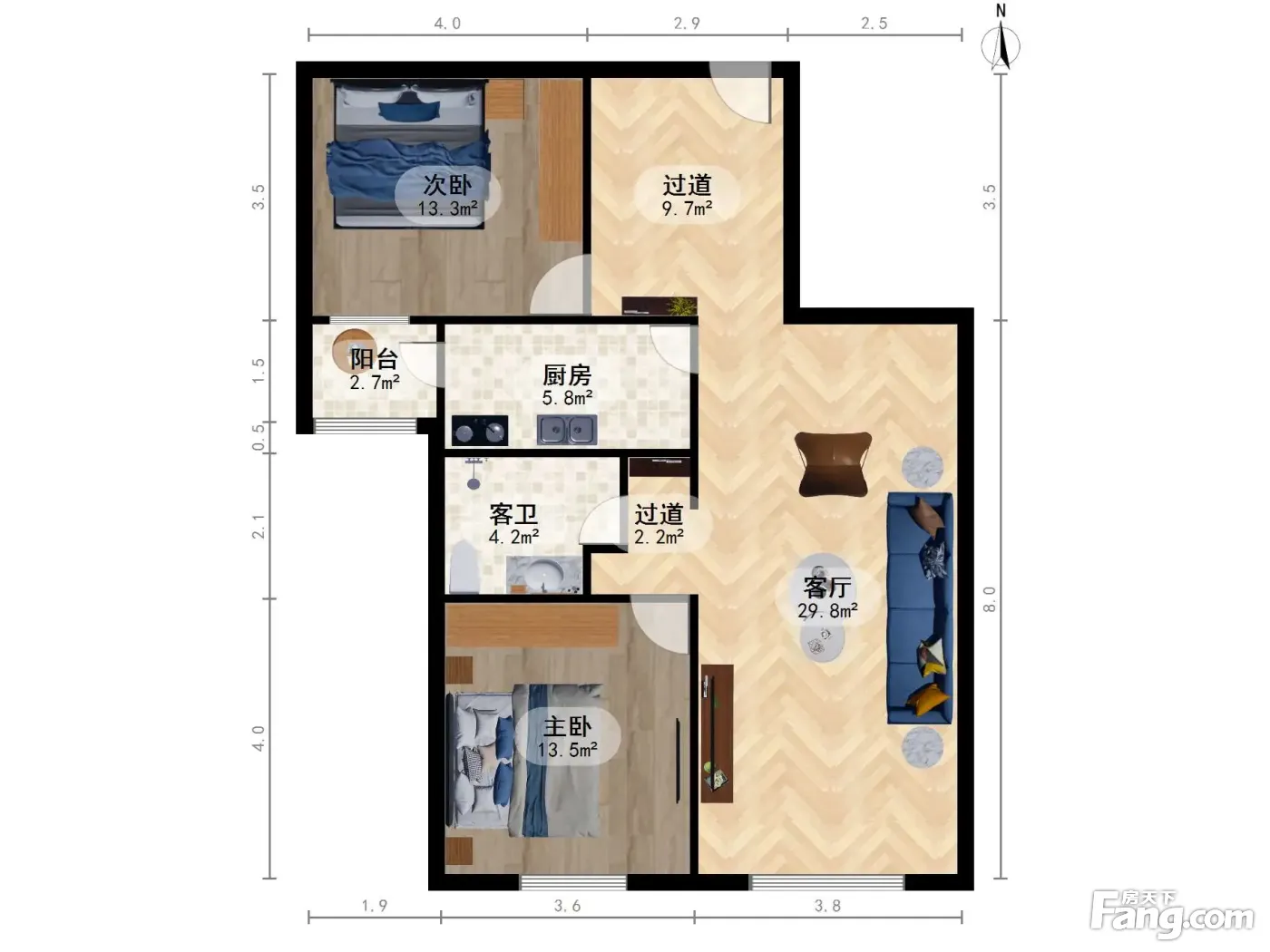 户型齐全,主打户型方正,明卫,明厨,客厅朝南,全明格局二居