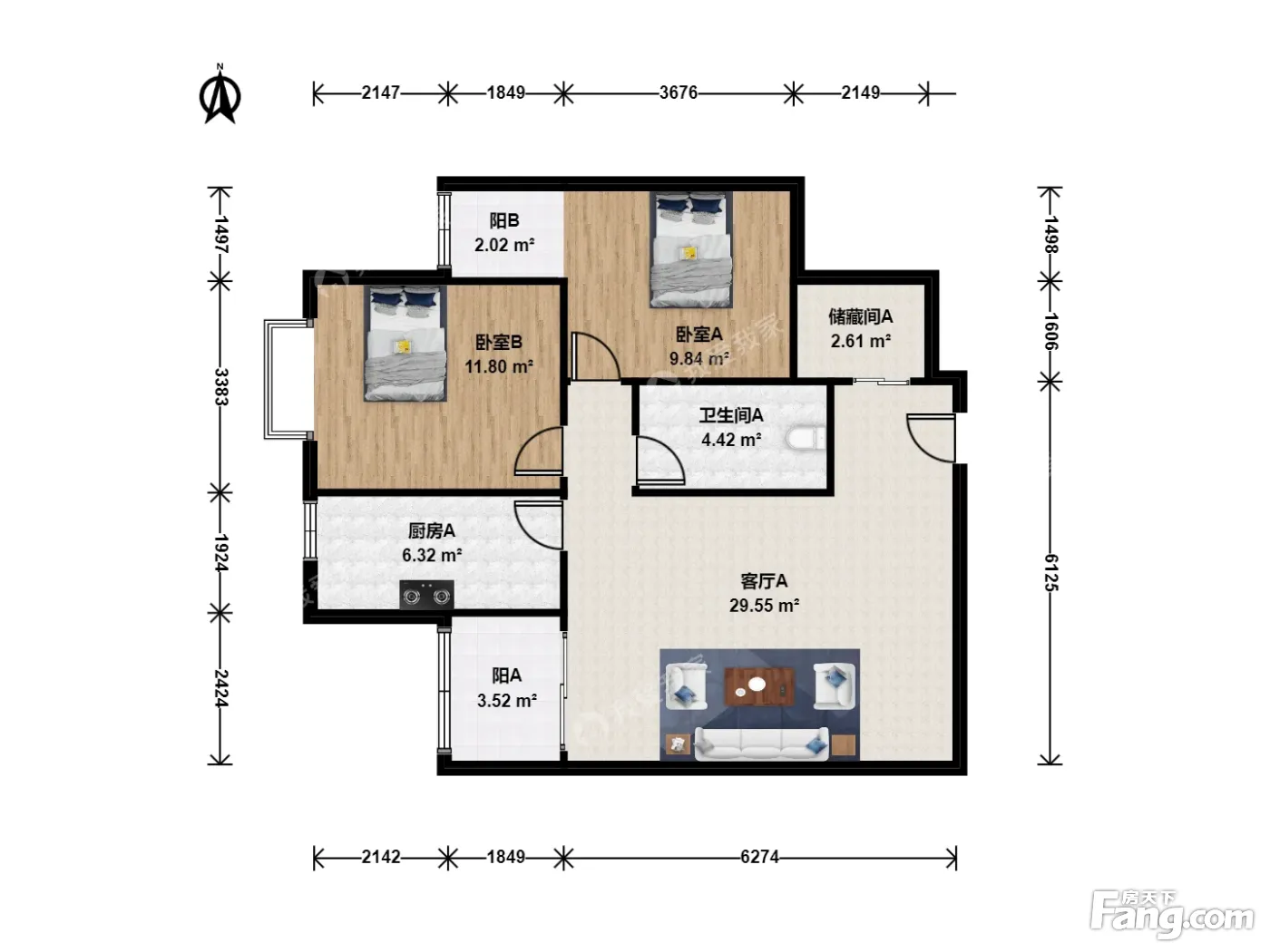 户型齐全,主打户型方正,明厨,双阳台二居