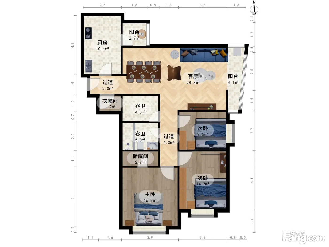 户型齐全,主打明厨,独立衣帽间,双阳台,主卧朝南三居