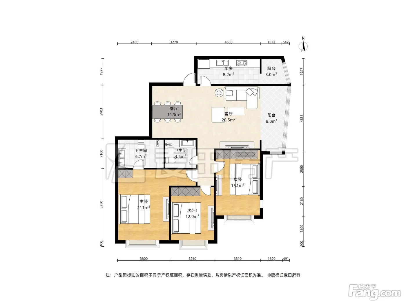 户型齐全,主打明厨,独立衣帽间,双阳台,主卧朝南三居
