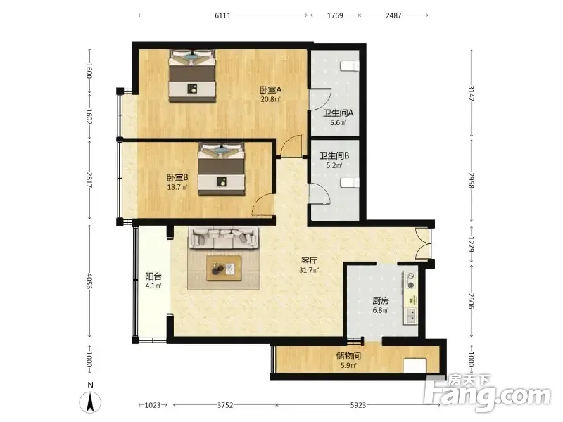 2室1厅2卫