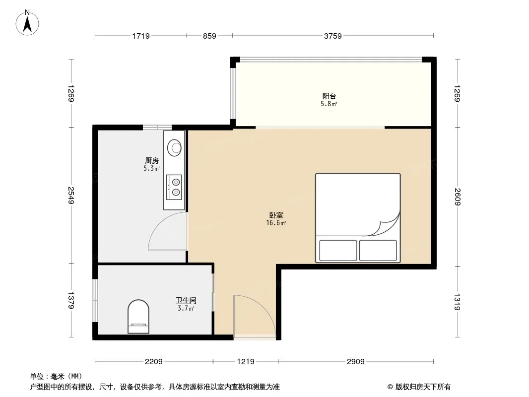 明日嘉园 1室0厅 北