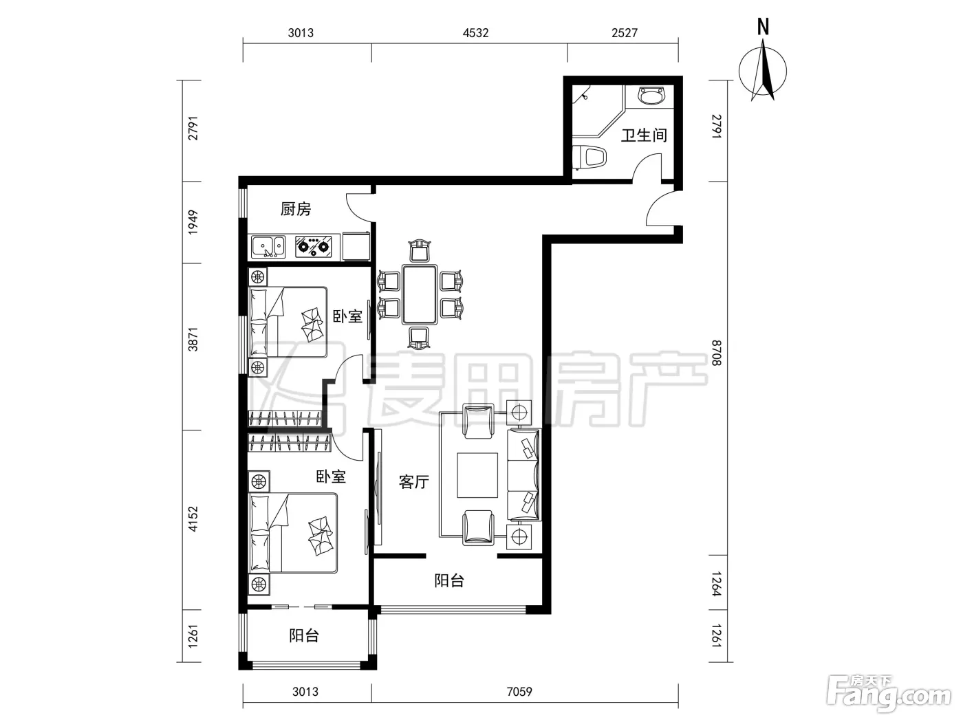 户型齐全,主打户型方正,双阳台,双卧朝南,主卧朝南三居