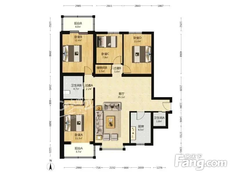 户型齐全,主打户型方正,明厨,双阳台四居