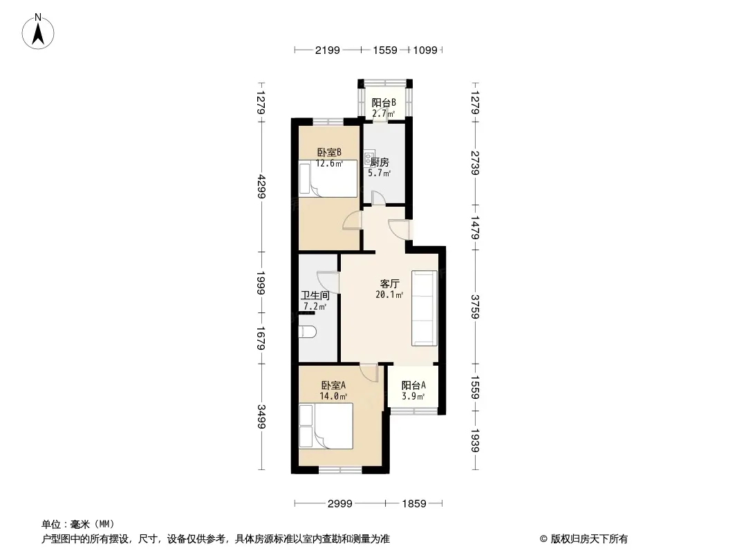 户型齐全,主打户型方正,客厅朝南,双阳台二居