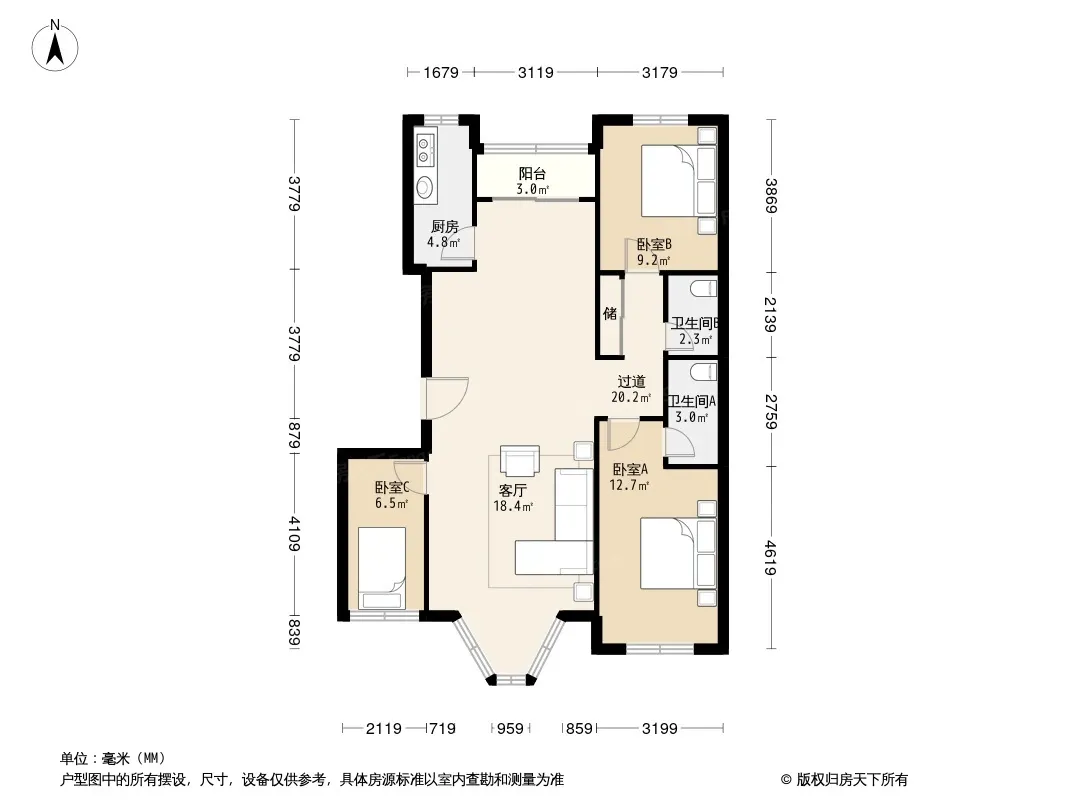 *获取完整户型报告,同时会有免费语音讲解服务