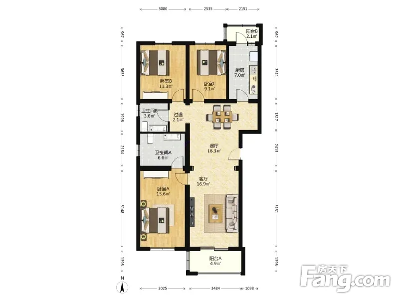 3室2厅1卫