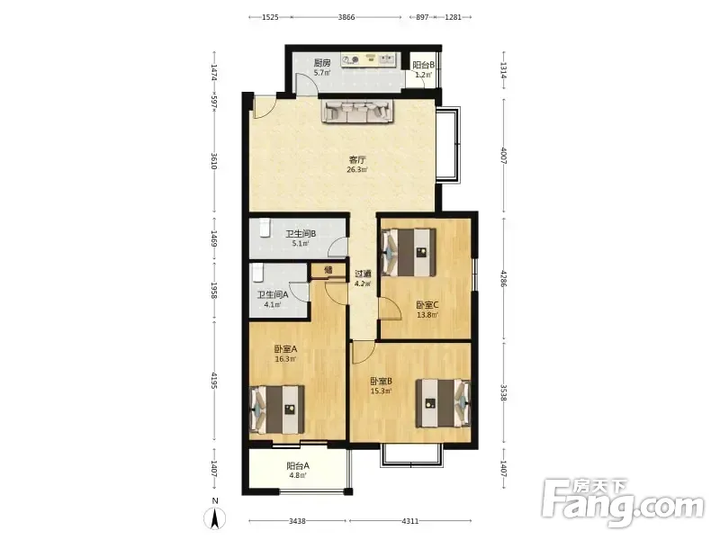 3室1厅2卫