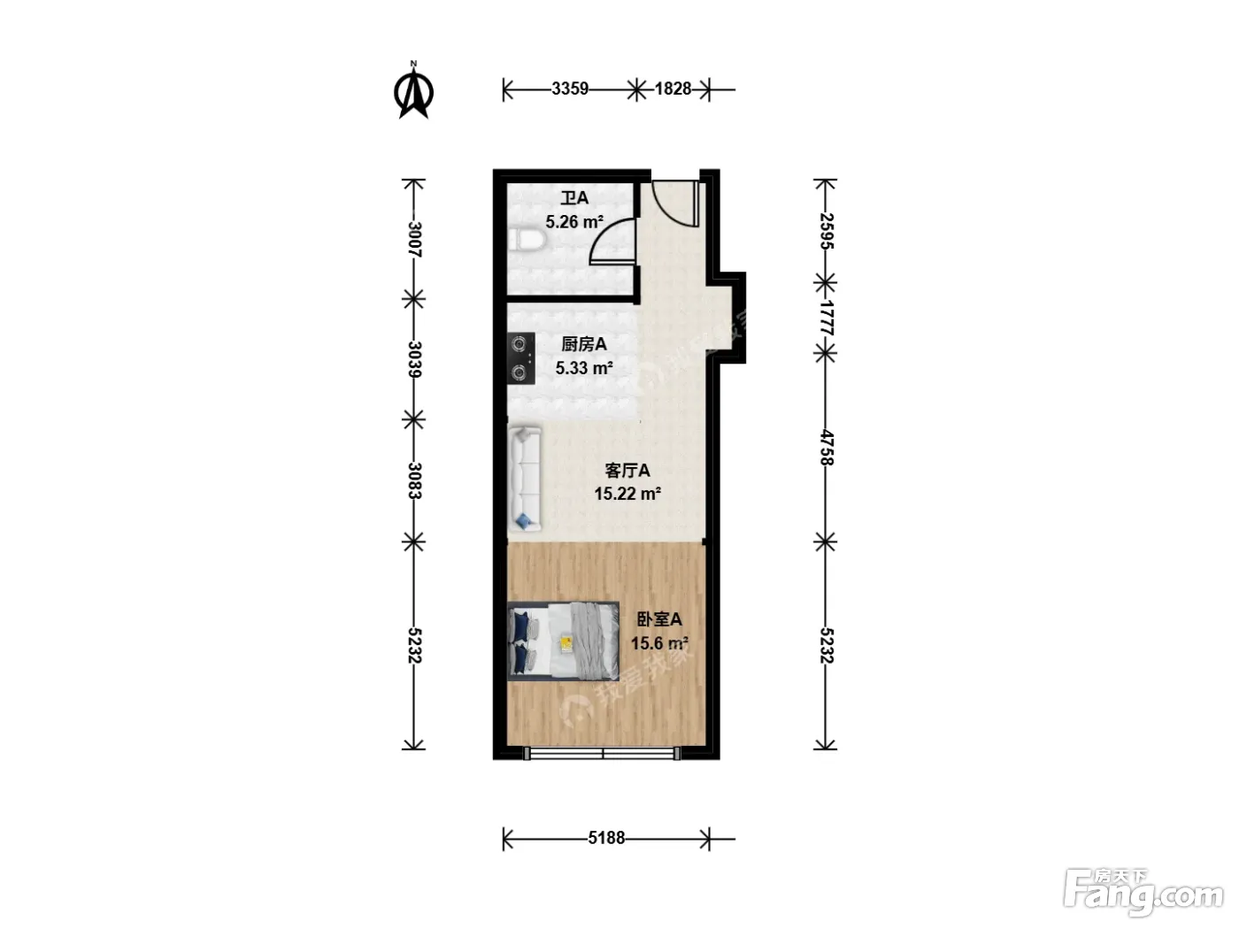 户型介绍:此房户型为1室1厅1卫,建筑面积为59.16平米,朝向为南。