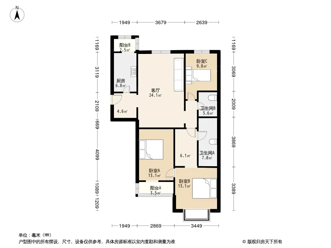 户型齐全,主打户型方正,主卧朝南,明卫三居