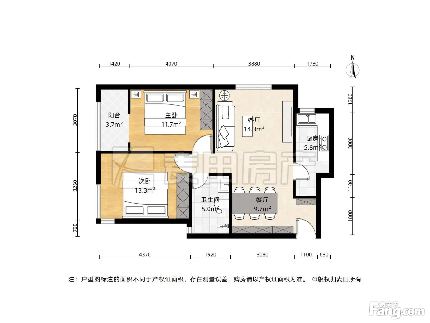 户型齐全,主打客厅朝南,主卧朝南二居