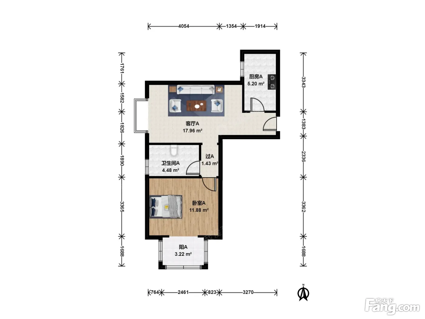 户型介绍:南向一居室,视野开阔无遮挡,利用率比较高