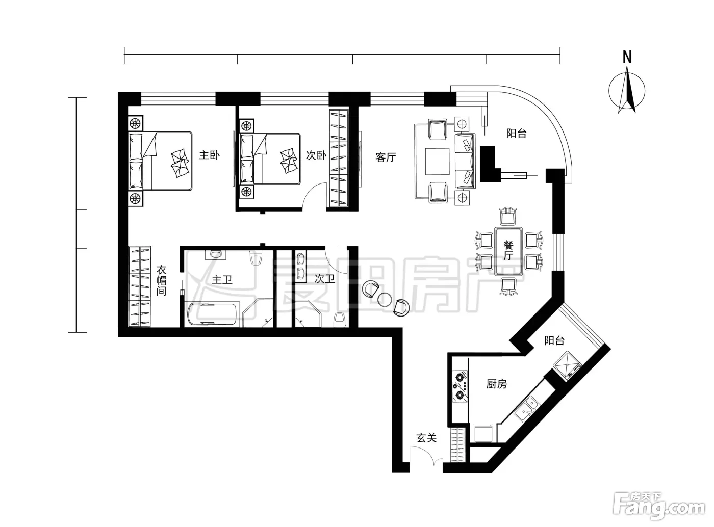 户型齐全,主打户型方正,明卫,独立衣帽间三居