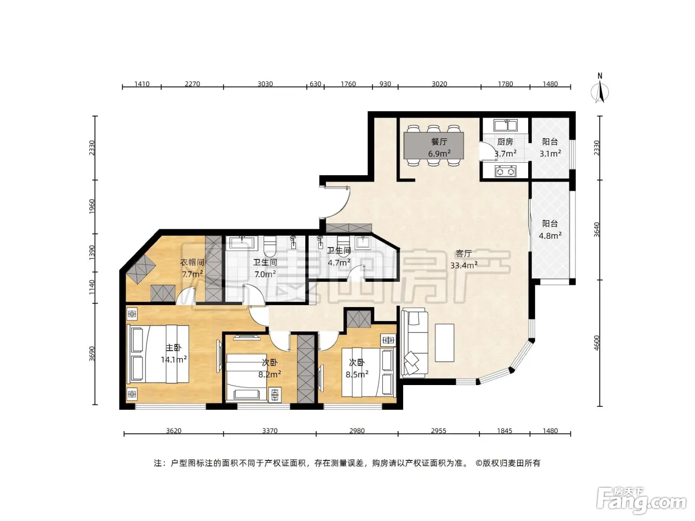 户型齐全,主打户型方正,明卫,独立衣帽间三居