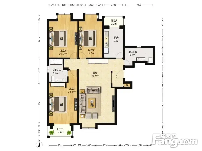 3室1厅2卫