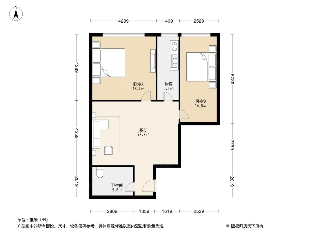 户型齐全,主打户型方正,明厨,主卧朝南一居